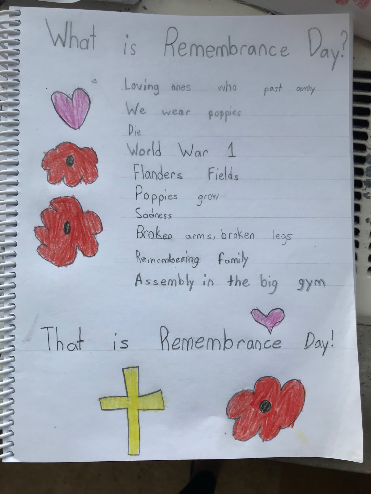 Thank-you to everyone for a lovely week in grade 3. We hope you have a great weekend, spending some time on Monday to be thoughtful about Remembrance Day. A reminder that we do have school on Monday!